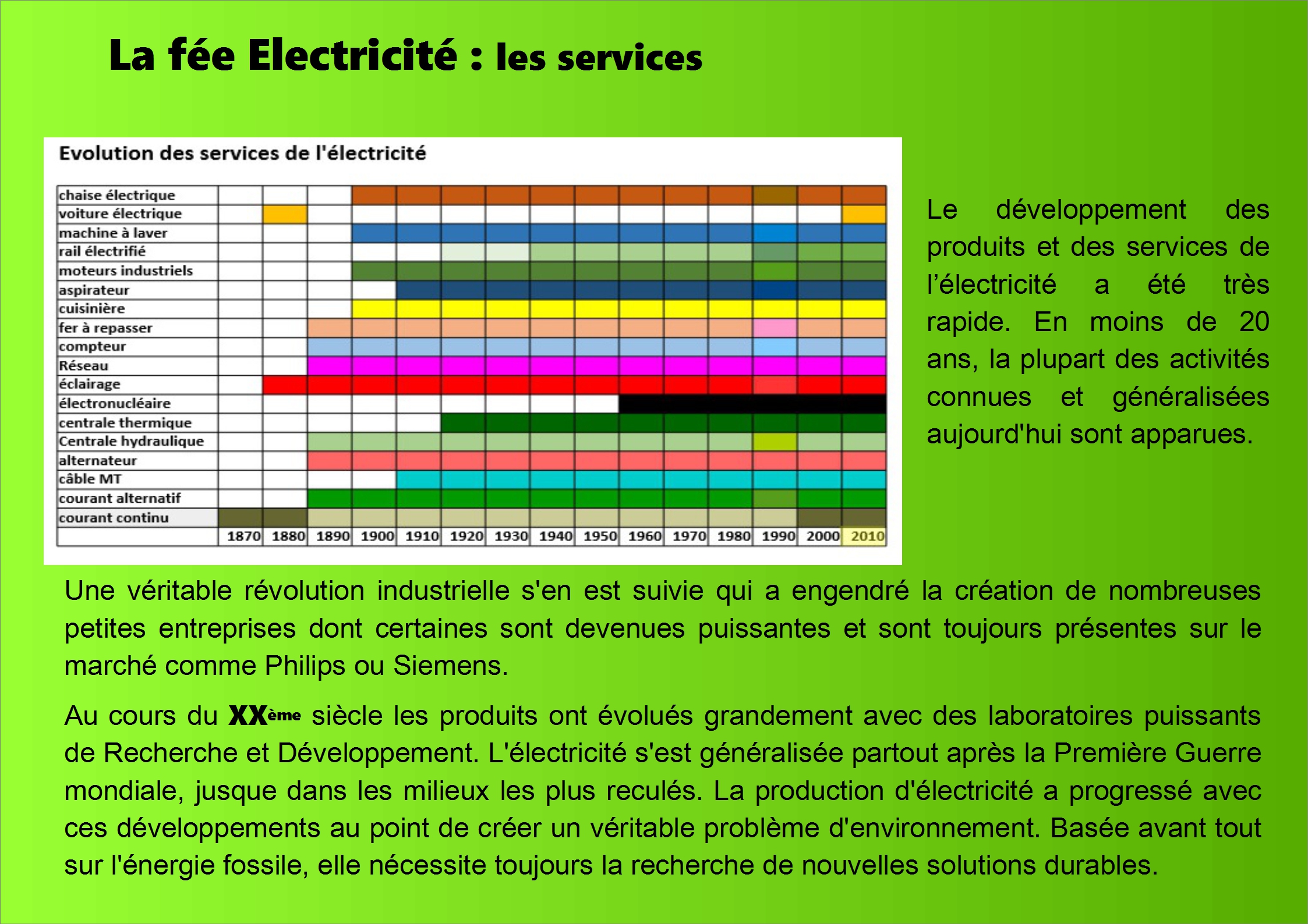 Notons enfin que l'électricité sera le moteur essentiel de l'économie du 20ème siècle.