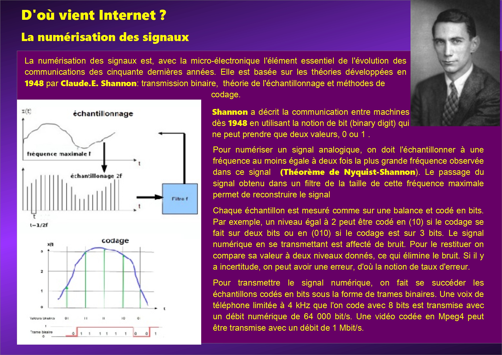 Alors que les réseaux précédents étaient basés sur un signal de type spécifique (téléphone, télévision, télex, radiodiffusion) années après années la parole en 1970, le son audio en 1980, la vidéo en1985,vont être numérisés et être traités comme des données. Ces signaux vont rejoindre les réseaux de données et sont aujourd’hui acheminés par Internet.
