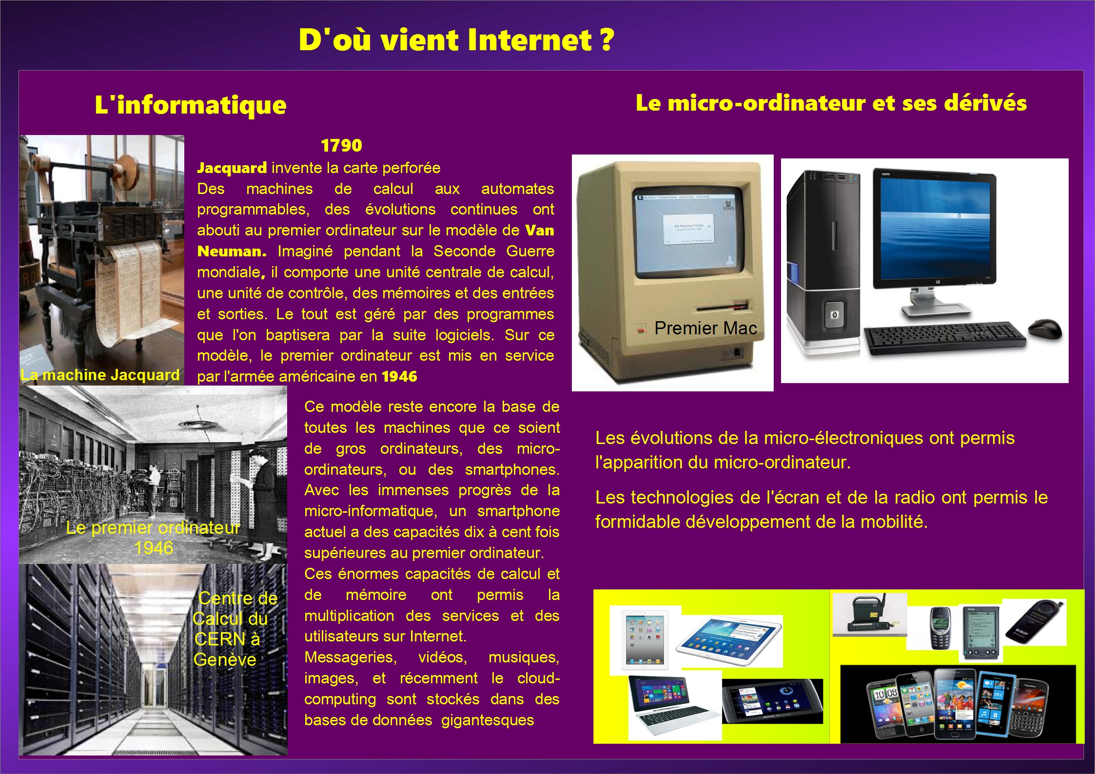 L’informatique, née de la seconde guerre mondiale, va révolutionner avant tout l’entreprise que ce soit en terme de production ou de gestion. Tous les secteurs seront touchés de la banque à l’industrie manufacturière qui sera transformée par la robotisation.